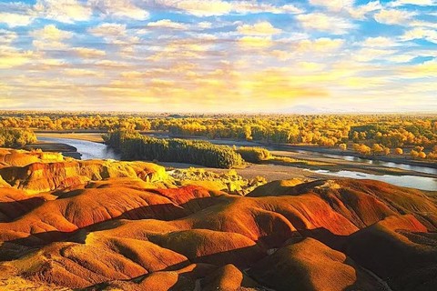 今日早起沿着S21沙漠高速公路出发,这条公路横跨准噶尔盆地,是北疆唯一的沙漠高速公路。S21沙漠高速的开通将大漠变通途,让来到这里的人体验到大漠孤烟直的绮丽景象。适时抵达乌伦古湖,在荒凉的沙漠里突然出现一片绿洲,让人眼前一亮,像蓝玉石镶嵌在广阔的沙漠中。后前往素有“天下第一滩”之称的五彩滩,大家可以拍摄五彩滩雅丹地貌的日落,观赏一河隔两岸,两岸不重天的特有景观,适时去往布尔津酒店入住。有兴趣的队友入住后,可自行结伴前往河堤夜市品尝当地美食,体会一下当地人的烟火气。