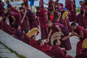 恋恋不舍的离开扎尕那,我们来到了藏区人民的圣地—甘南佛国【郎木寺】,郎木寺的名字来源于传说中的西王母,可见它是何等的神秘而庄严。随处可见的朱红色喇嘛服诉说着心中的信仰,转经筒发出低沉的呢喃,那是对幸福安康的渴望。身处禅意、空灵的郎木寺,无形中多了一份内心的安宁。哦对了,如果你是个摄影爱好者,千万不要错过这里的景色。郎木寺寺中有镇,镇中有寺,周围群山环绕,山顶奇峰嶙峋,还有作为最佳取景地的红墙金顶,怎么拍怎么出片!