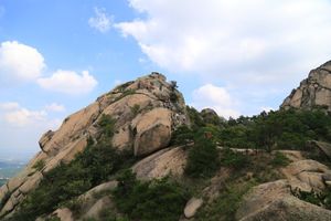 山峰挺拔陡峭,山上常年云雾缭绕,因整座山体呈笔架状,故又称“笔架山”。山的正面朝北,两块巨石凌空直下,交叠成“人”字,形成百丈悬崖,象打开的一幅蚊帐,故此处被人们称作“帐子门”。山的左上侧还有一小峰,高百米,全部由巨石天然生成,状似一只侧卧的癞蛤蟆,故又被称作“蛤蟆石”。传说中,大顶山的主峰由一只天鹅化成,因癞蛤蟆想吃天鹅肉,而遭雷击,在此化成“蛤蟆石”望天兴叹。大顶山主峰建有城墙,现存城门一座。