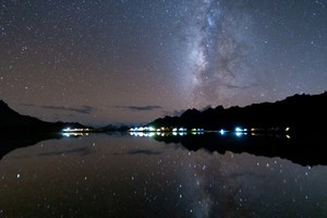 ▲湖边拍摄银河倒影