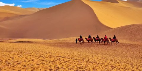 参观结束后,我们前往沙漠游乐园【鸣沙山·月牙泉】(车程约20分钟,游玩时间约2-3小时),爸爸妈妈可以带着小朋友骑骆驼,滑沙(费用需自理),也可以去攀登进一步、退半步的【鸣沙山】,参观被誉为“银山四面沙环抱,一池清水绿漪涟”的天下沙漠di一泉【月牙泉】,月牙泉就像一弯新月落在黄沙之中,泉水清凉澄澈,碧波漾漾。爬上高大沙丘欣赏沙漠落日,感受“大漠孤烟直,长河落日圆”的豪情壮志,游玩尽兴后再离开。