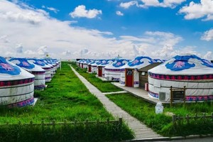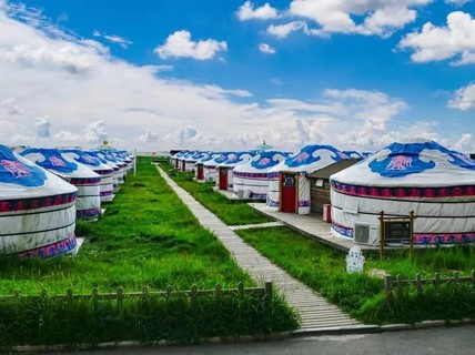游玩结束后,我们乘车赴【辉腾锡勒草原】(车程约2小时),辉腾锡勒是蒙语,汉意为寒冷的山梁。辉腾锡勒草原是我国少有的高山草甸草原。整个草原蓝天白云、绿草如茵,野花点点、毡包座座,牛羊片片、牧歌悠扬、奶香飘香,绘成一幅美轮美奂的草原风情画。抵达草原后,接受蒙古族最高迎客仪式——敬献下马酒!穿着蒙古族服饰的小伙、姑娘为您歌唱、敬酒,为您洗去一路风尘,体会云淡天高好景象,感受中国最佳避暑胜地之凉爽!