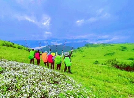 08:30 开始继续徒步穿越草甸箭竹林。这高山草甸的风景可不是一边的哦,当你爬上草甸高峰,放眼望去,众山尽收眼底的感觉哦,一路上满是野花相伴,就算累也值了!只是小小提醒,这箭竹林可不好穿哦,有长袖就穿上吧!