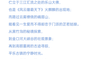 行程概览:早餐后出发,前往参观这个被众多文化学者称为“中国最美汉阙”的高颐阙。稍后继续参观【川剧艺术博物馆】弘扬传统文化传承川剧艺术【雅安生态博物馆】雅安是世界第一只大熊猫的科学发现地、命名地和模式标本产地,被誉为“天府之肺”“动植物基因库”。下午前往【平乐古镇】——南方丝绸之路第一驿站;这里古迹犹存,古风依旧,是因为它至今仍保留着“九古”:古街、古寺、古桥、古树、古堰、古民居、古作坊、古驿道、古风俗。游玩结束后,返回成都,结束本次峨乐之旅!