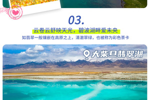 下午,我们将来到天空之镜【茶卡盐湖】,作为人一生必须要去的55个目的地之一,茶卡盐湖三面环山,山水相映,天地相连。景区小火车叮当作响,轨道边的行人嬉笑玩闹,随手抓拍一张,人生高光时刻+1。