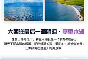 1. 今日我们沿着环湖公路游览赛里木湖,让大家深度游玩赛里木湖,无论乘坐景区区间车/直通车,区间车费正常产生。