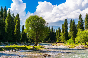 这里还有中国最美的“花斑森林”,在天山雪岭周围,高低起伏的云杉林与草原交错在一起,形成了一种奇特的交错美,当地人给它取了一个有趣的名字——“花斑森林”。