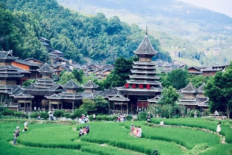 肇兴侗寨,位于贵州黔东南州黎平县东南部。占地18万平方米,居民1100余户,6000多人。是全国最大的侗族村寨,也是侗族的民俗文化中心,素有“侗乡第一寨"之美誉。肇兴不仅是鼓楼之乡,而且是歌舞之乡,寨上有侗歌队、侗戏班。