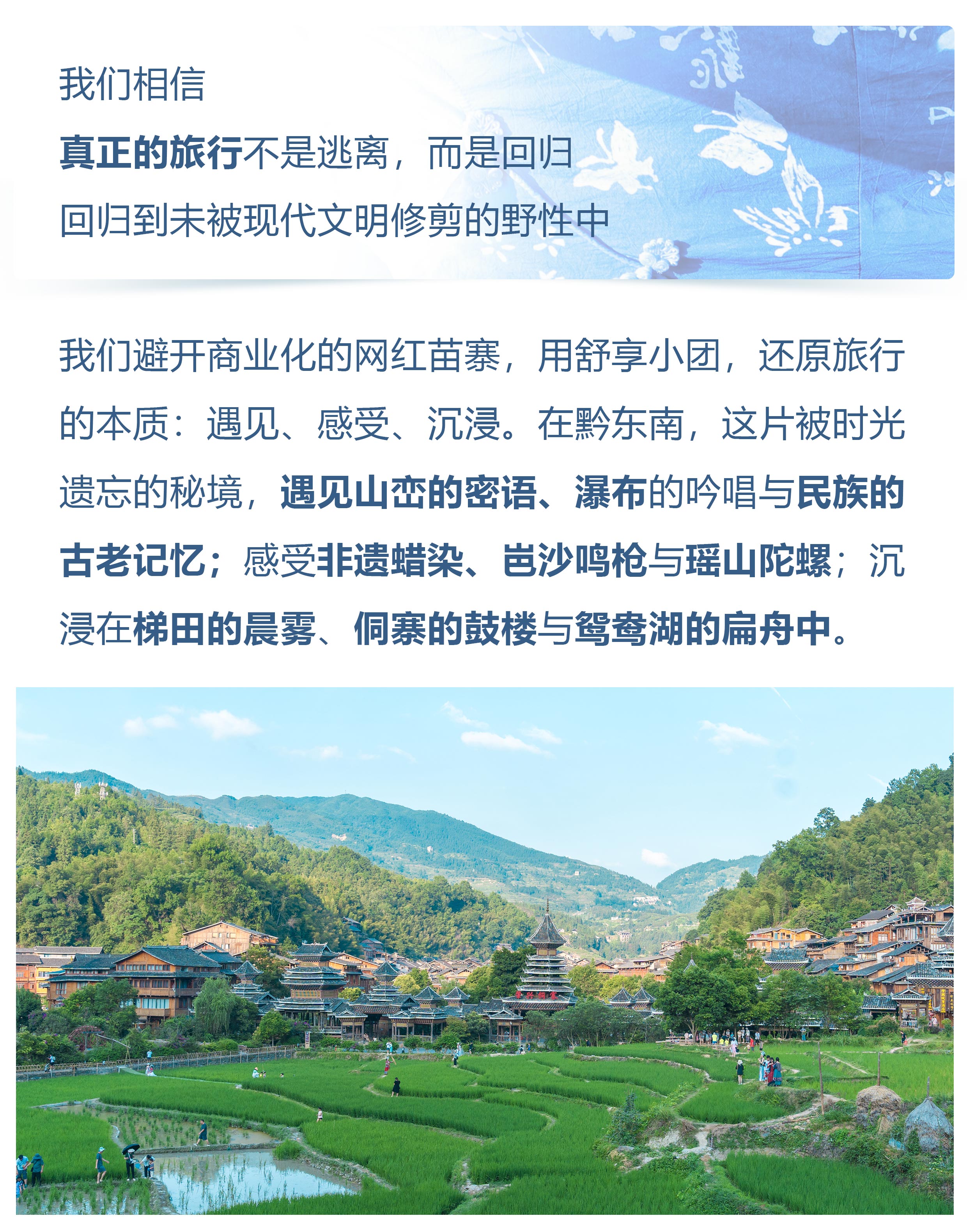 抵达后我们将跟随【非遗传承人】学习蜡染的制作过程体验结束后我们返回肇兴入住