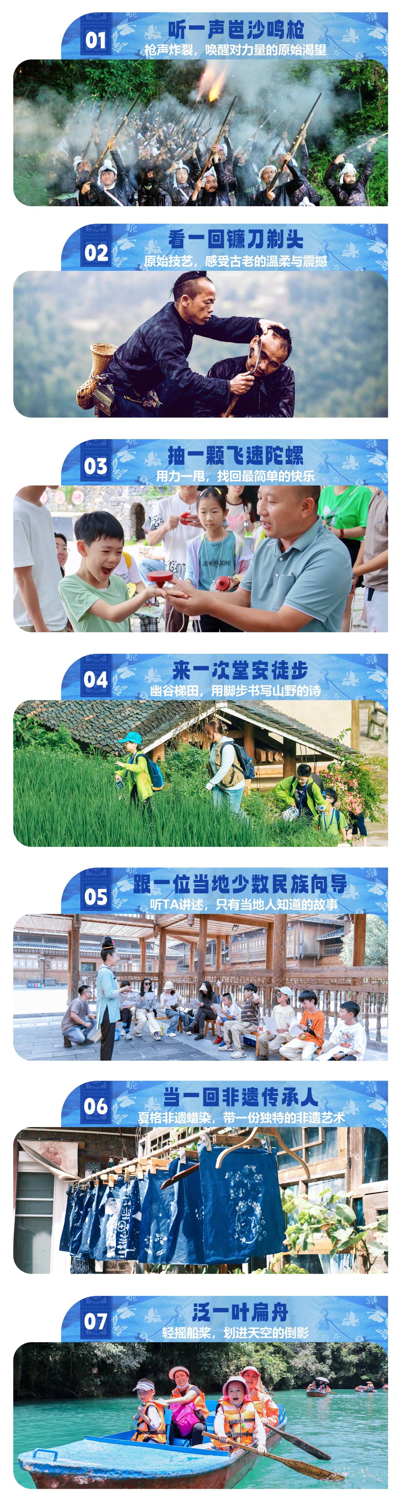 早餐后我们前往“中国最后一个持枪部落”【岜沙苗寨】在这里生活的人们因为政府允许可终身配枪,我们会在这个被称为“单身者胜地”的地方去了解苗族与侗族的结合,近距离观看岜沙汉子的彪悍与纯朴,来自大山深度的持枪部落,通过当地观看村民表演的【镰刀剃头】和【鸣枪表演】更近一步了解这个把时光凝固住的村寨。