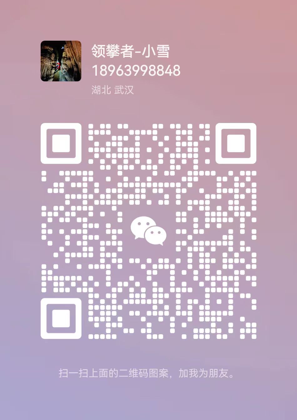 注:请小伙伴报名后扫以下二维码加客服微信,备注报名活动名称,已加微信小伙伴,请直接私信客服并备注报名活动名称,活动出发前一天建群,群里会通知具体的集合时间,集合地点,车牌号,领队电话,和注意事项,请报名后务必提前联系客服。活动出发前2天取消活动的需找合适的人替补,否则费用不退!
