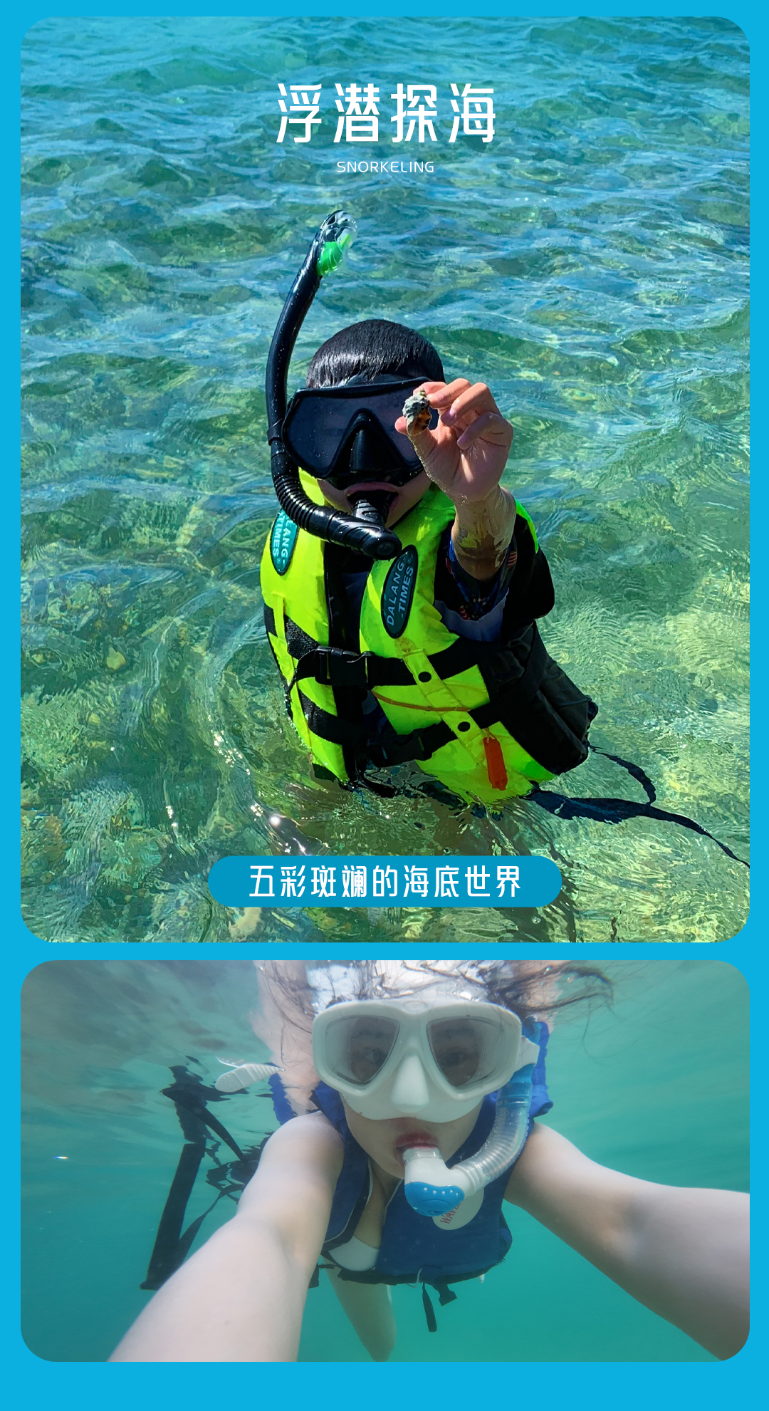 1)浮潜体验1小时,含新咬嘴费用;