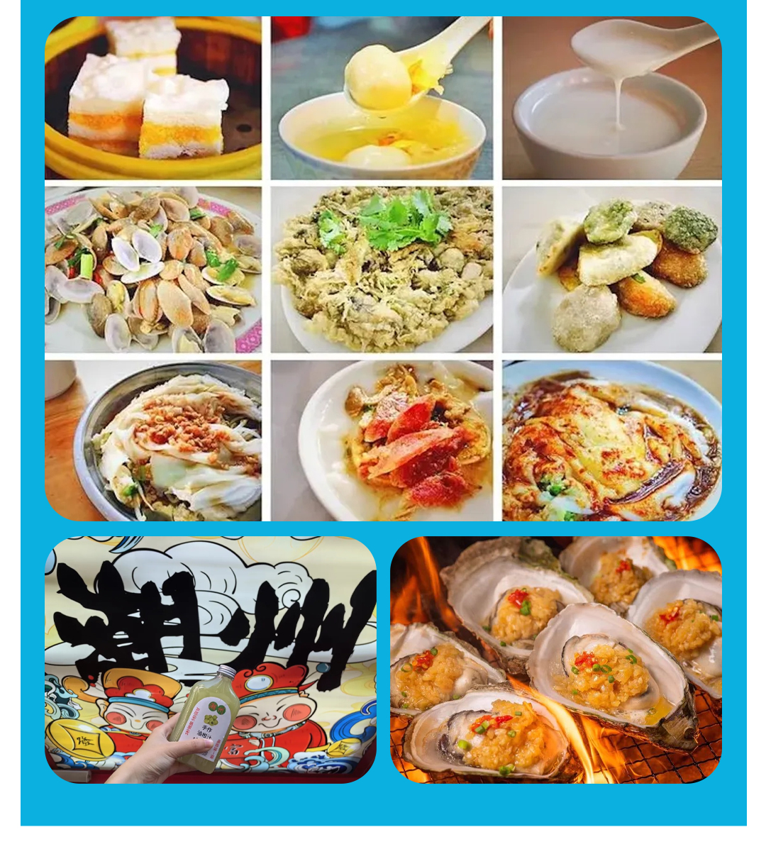 美食吃不停!肠粉、牛杂粿条、蚝烙、粿汁、春饼、草粿、糕烧番薯芋、甘草水果、凤凰浮豆干、溪口卤鹅、肉脯等等。