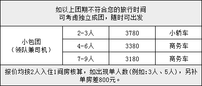▷备注说明:报名前请提前咨询客服是否有余位,若您的出行日期和以上团期不一致,可以联系我们的客服为您单独订制小团出行!
