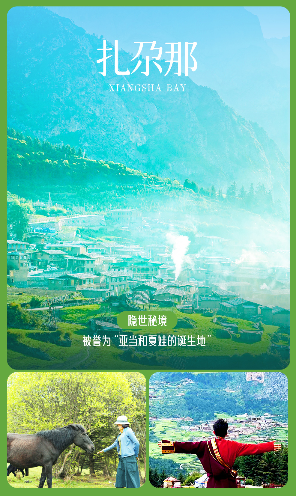 下午抵达【扎尕那】(车程244KM 行车约4h 住景区)。这里山势奇峻、景色优美,地形犹如一座规模宏大的巨型宫殿,又似天然岩壁构筑的一座完整的古城,这片世外桃源早在近百年前就被洛克誉为亚当和夏娃的诞生地。