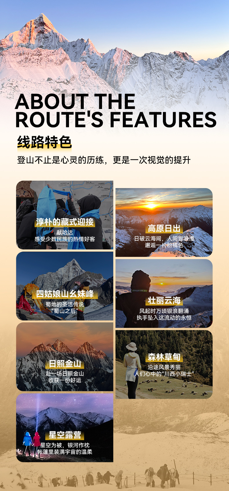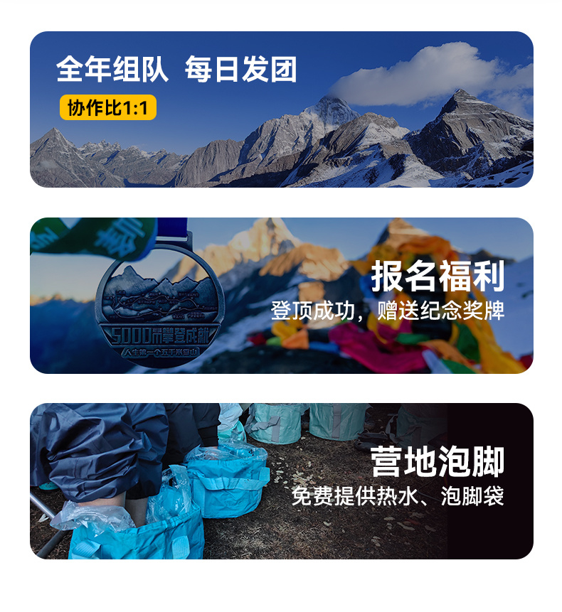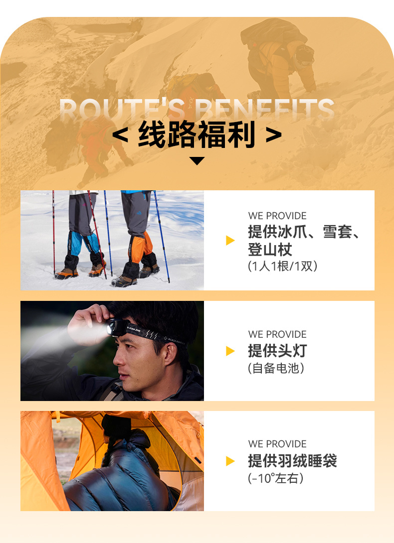 6.向导仅负责大本营至山顶路段的带路,不是保姆式服务,登山活动必须具备一定的体力基础,报名前请自行评估。