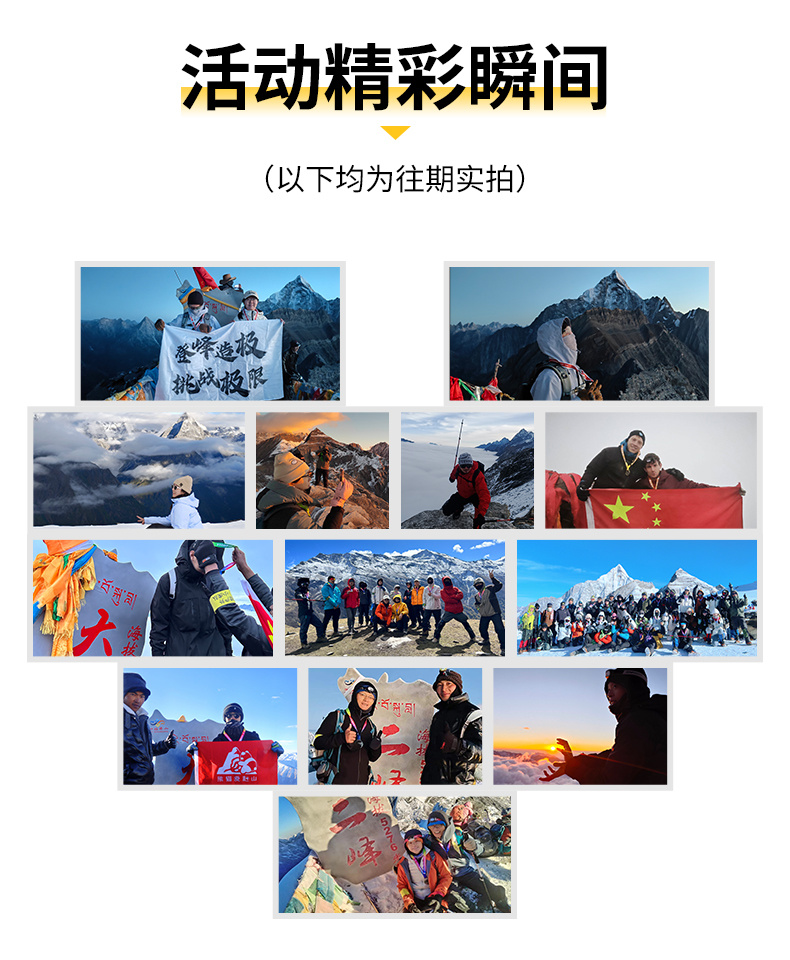 8.高海拔登山会有各种不能顺利登顶的情况(如体能、高反、天气恶劣等),但所有成本均已支付,不支持退费哦。