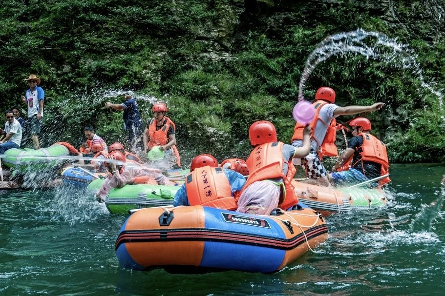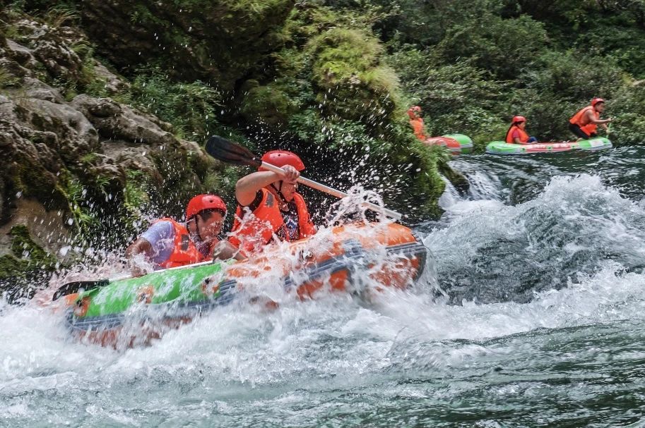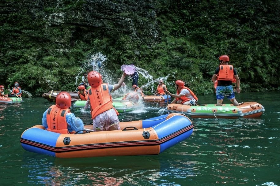 猛洞河漂流:全程10余公里激流密林,155道弯,133重滩潭,浪尖起舞,峡谷穿行,今夏最野的漂流模式,由你掌舵!一舟两人,你们是彼此的船长与舵手。想体验速度与激情?那就在险滩处握紧船桨,让浪花在耳边呼啸。没有固定路线,只有随性而往的惊喜——或许拐过一道弯,就能邂逅瀑布下的彩虹,或是与邻船来场“以多欺少”的水仗,尖叫声惊起林间飞鸟。别再让夏天只存在于朋友圈的滤镜里,穿上救生衣,让浪花替你记住这个滚烫的季节!