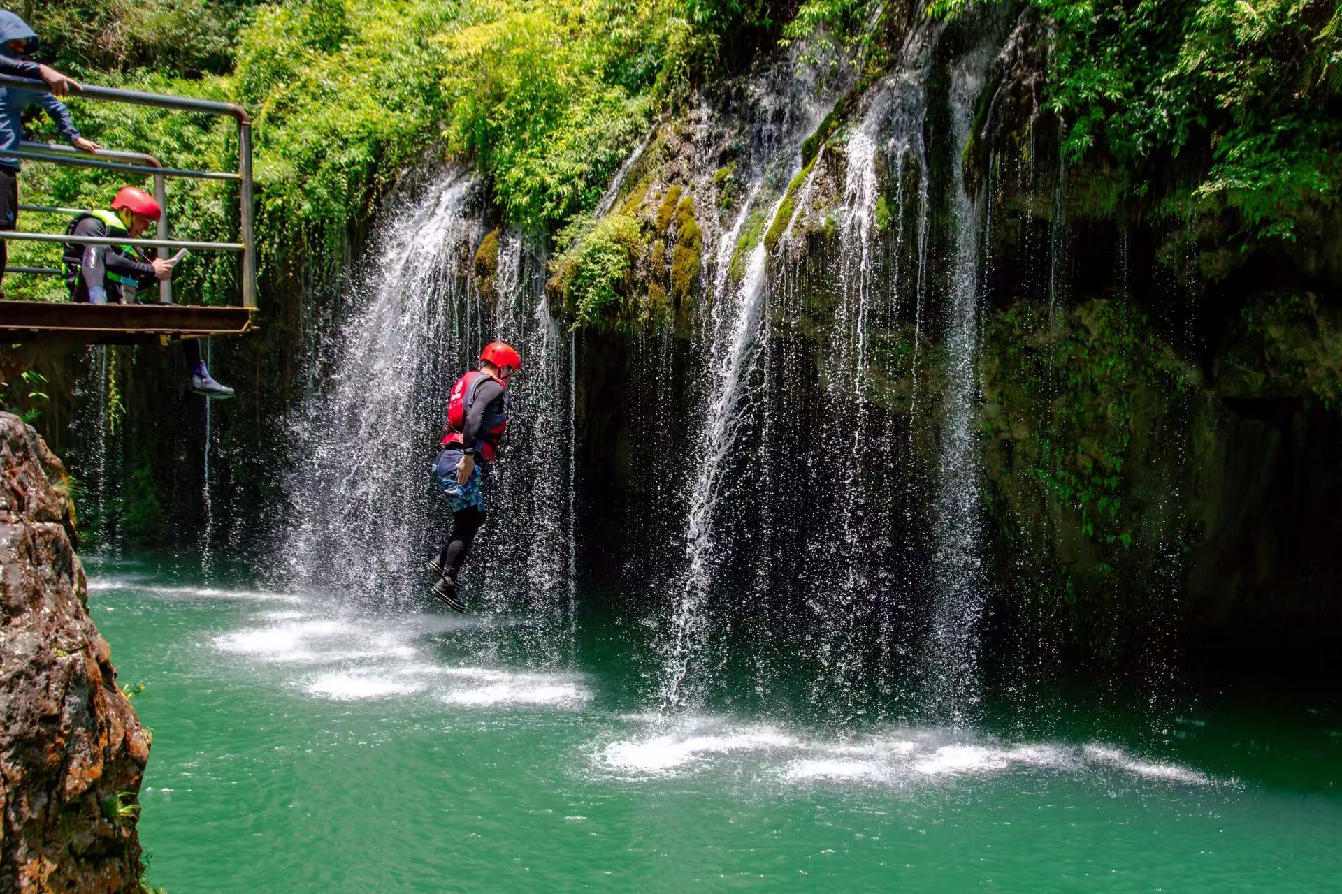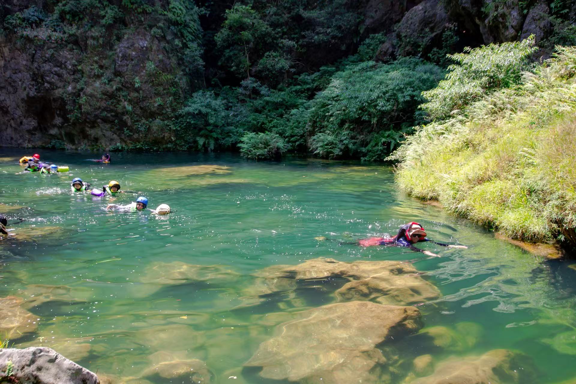 07:00 准时集合上车出发,前往今天徒步溯溪地点,收拾好一切出发前往马拉河,准备开始我们的疯狂之旅。大家把各自的行头都换上吧,潜水服,溯溪鞋,救生衣等等,两岸绝壁陡峭,岩石嶙峋美丽,滩险壁绝,水质清澈、大小潭无数、瀑布十余条迭起、险滩二十余处而著名,潭水如处女般恬静,水质湛蓝如玉,从铺满绿色藻类植物的山崖上流下,宛如珠帘,落入玉潭。约14:00上车带着意犹未尽的笑容一路呼呼回到我们温暖的家!