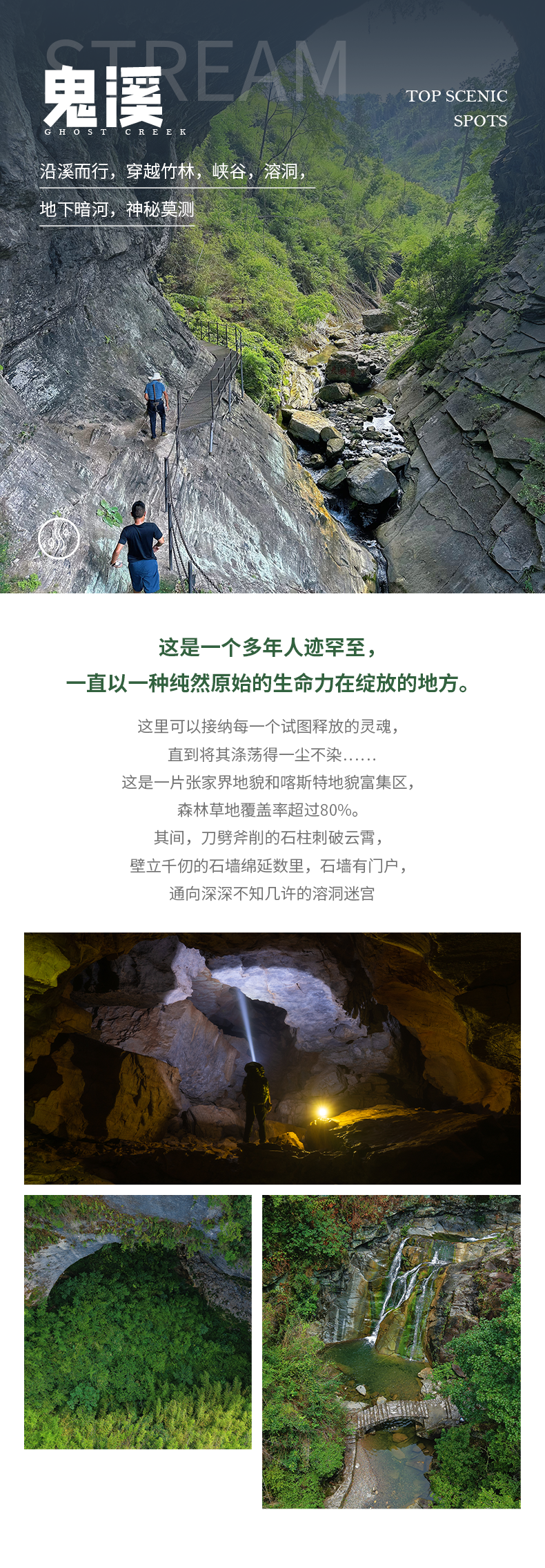 下午: 探秘鬼溪秘境——跨天生石桥、涉清凉溪水、攀趣味崖壁、探幽深溶洞,感受自然鬼斧神工。