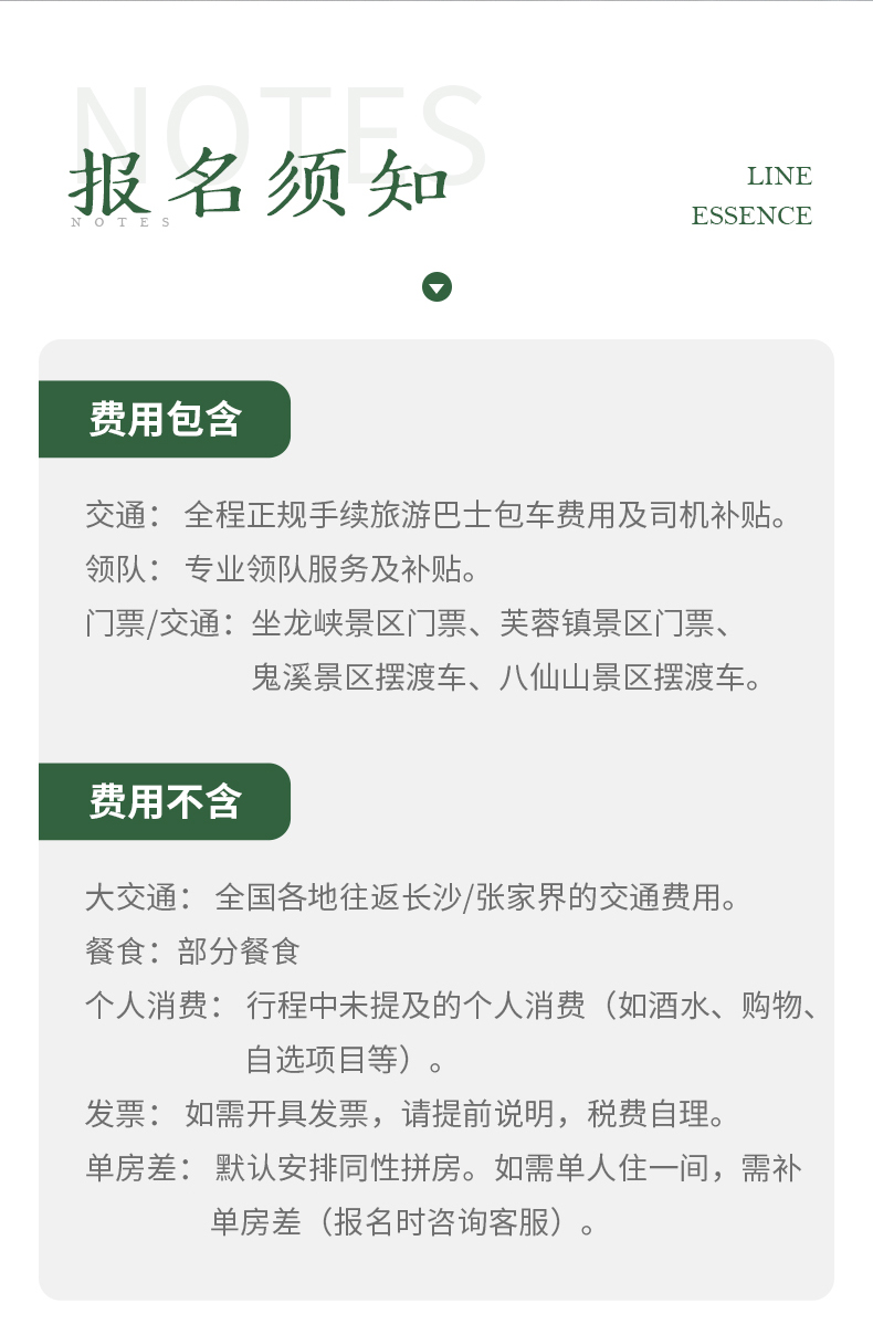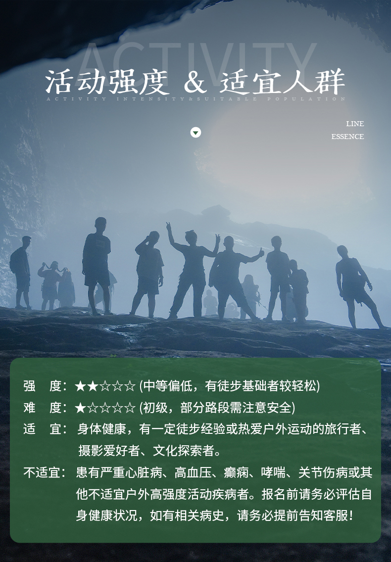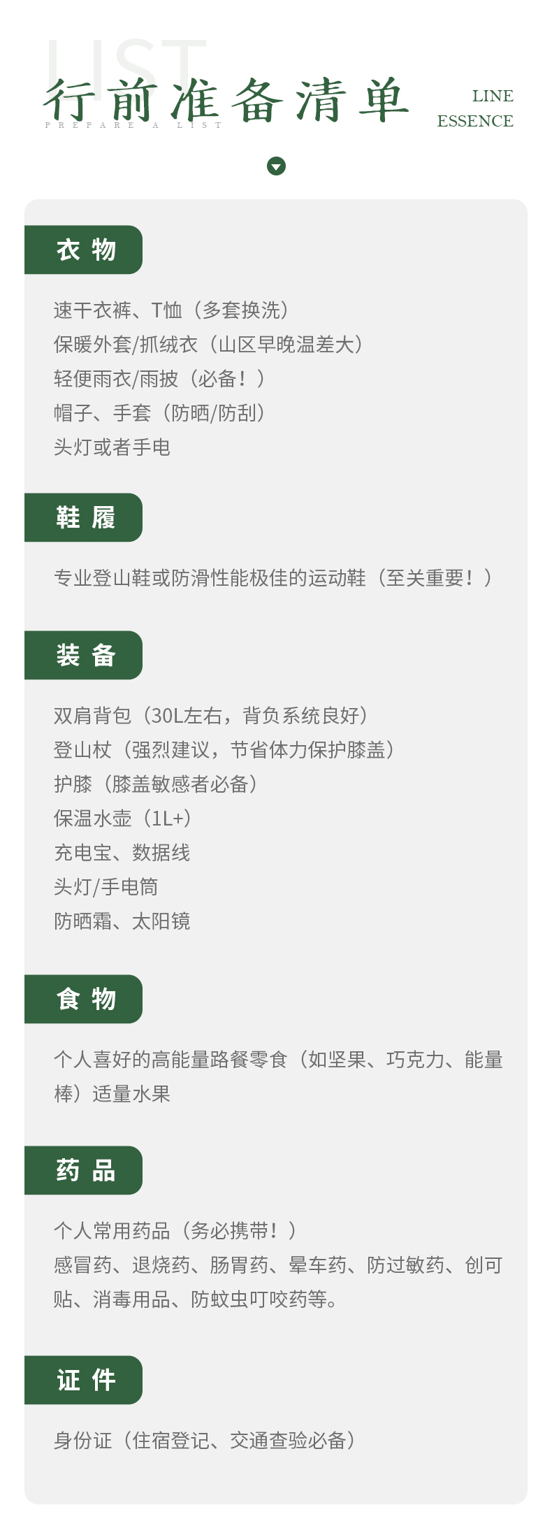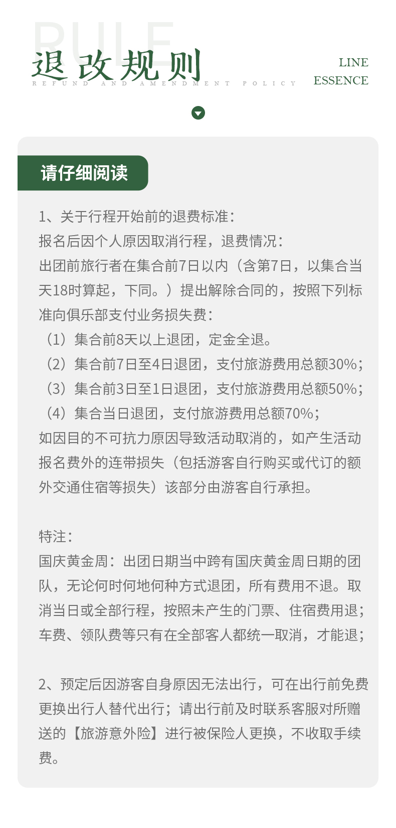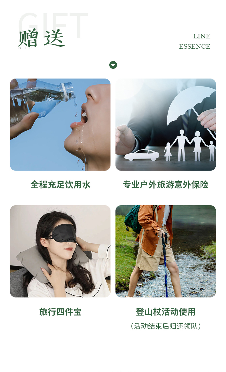· 活动出发前3天,领队将发布详细《活动须知》及酒店信息。