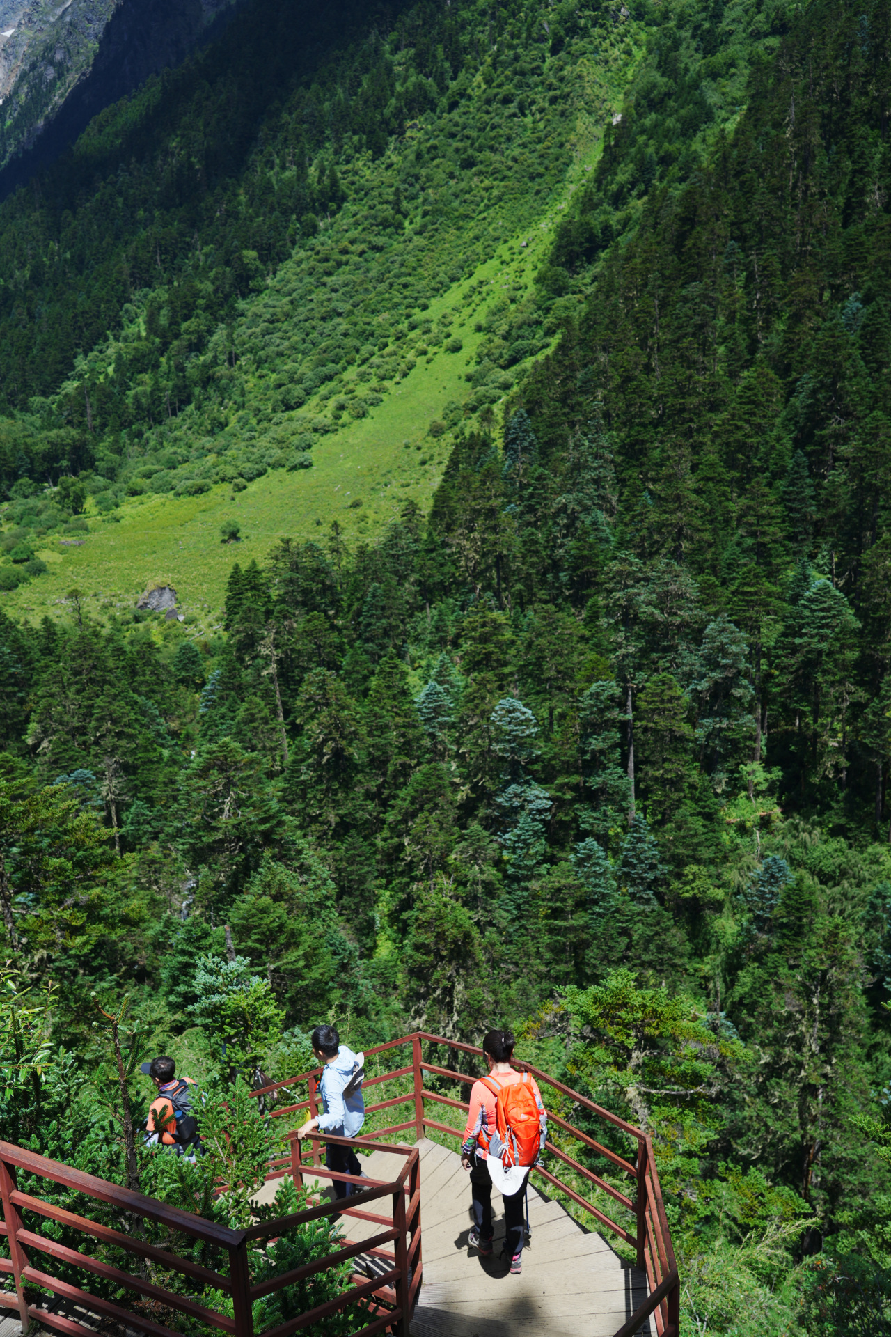 早晨,我们8点左右出发,沿着雨崩河一路下坡去寻找【尼农峡谷】。