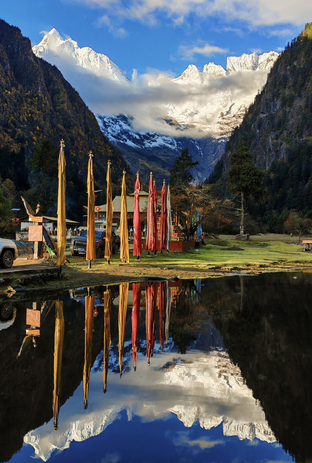 根据当天日出时间,我们需要提前起床前往【梅里雪山观景台】欣赏一生难得一见的神奇梅里日照金山。刷一组逼格爆表的朋友圈后,将于8:00乘车前往【尼农停车场】,然后从尼农开始我们就要徒步进入与世隔绝的雨崩村落了。