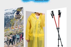 1、装备:每人饮用水1瓶、一次性雨衣1件(仅限雨季)、户外魔术头巾1条、登山杖2支(为了环保,我们鼓励领队回收登山杖,希望得到您的理解和支持);