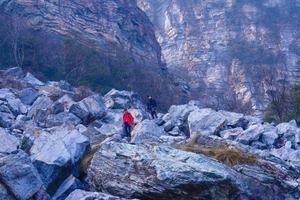 没有特定的道路,完全是自己随性攀爬,手脚并用,闪、跳、腾、挪、攀爬的确好玩,石块之上,大山深处,来一声幺喝,回音缭繞,响彻山谷。切忌逞一时之速。冰川石底下有流水但只闻其声而未见其形。