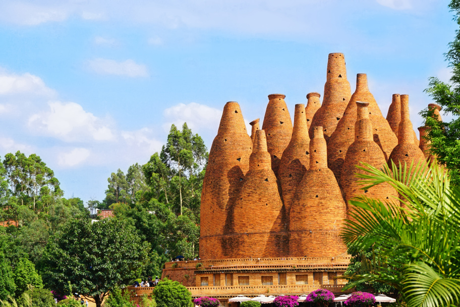 09:00 前往网红打卡地【东风韵小镇】,这是一个集休闲度假、佛教文化、民俗体验、生态观光于一体的艺术小镇。景区内建筑是以本地生产的红砖为主,将三种当地文化混合其中,十分具有设计感,其中酒瓶状建筑代表的是弥勒的红酒文化,还有彝族的火文化和共生向上的文化。