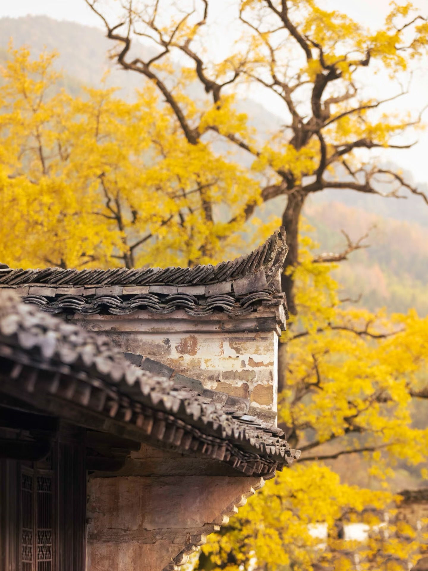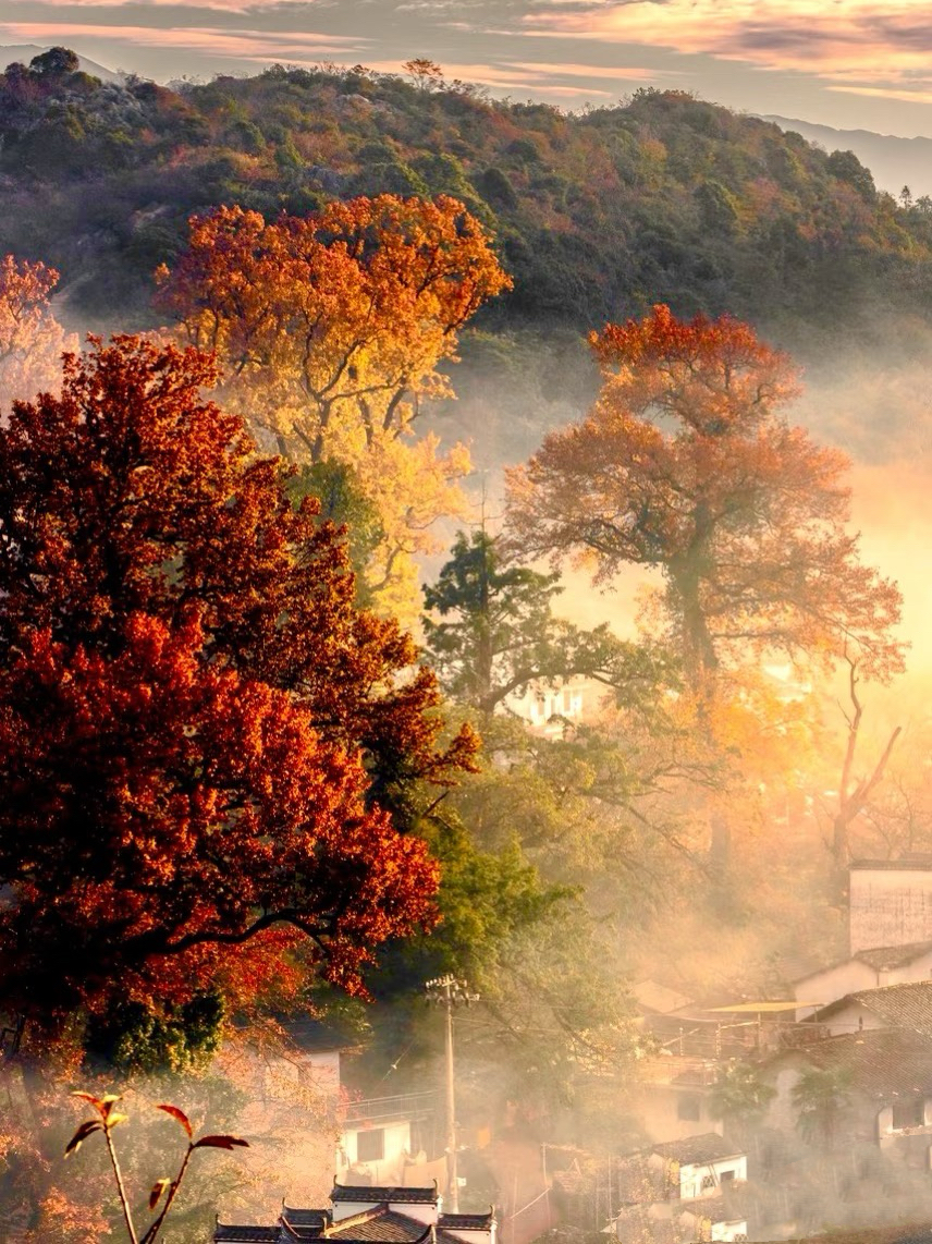 而当秋色海邂逅徽派建筑
