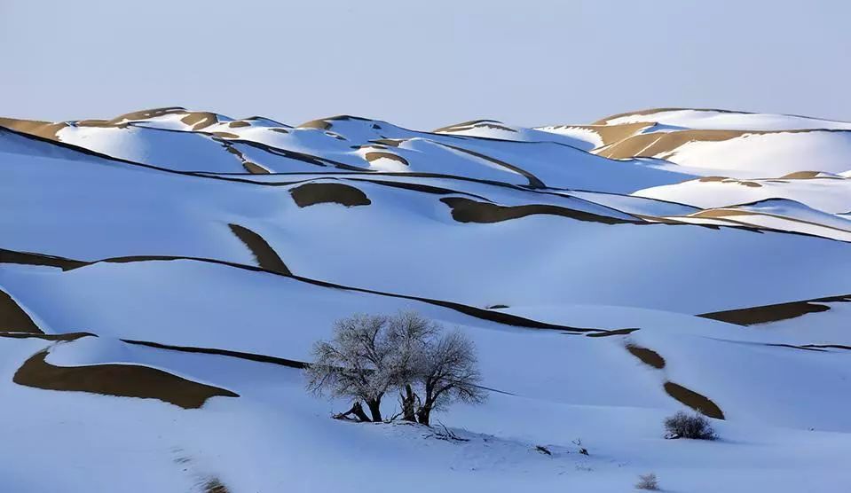 送走了秋天的候鸟,沙漠迎来了冬天的大雪
