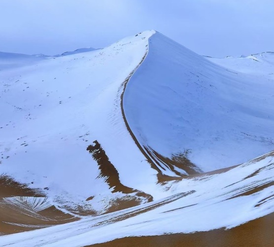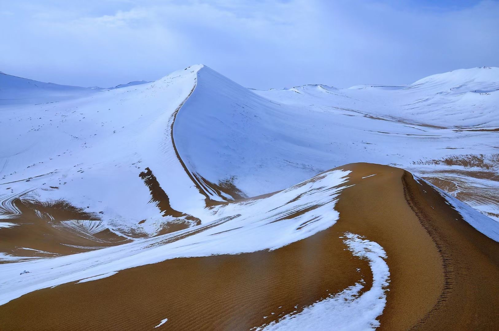 大雪纷飞覆盖沙漠,和最爱的人相拥腾格里