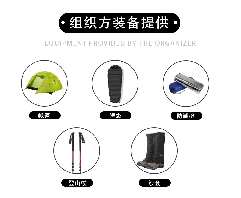3) 物资车:根据队伍规模提供不同的物资车,用于露营物资、做饭物资、用餐物资、大件行李等物资的运输,每日直达营地;