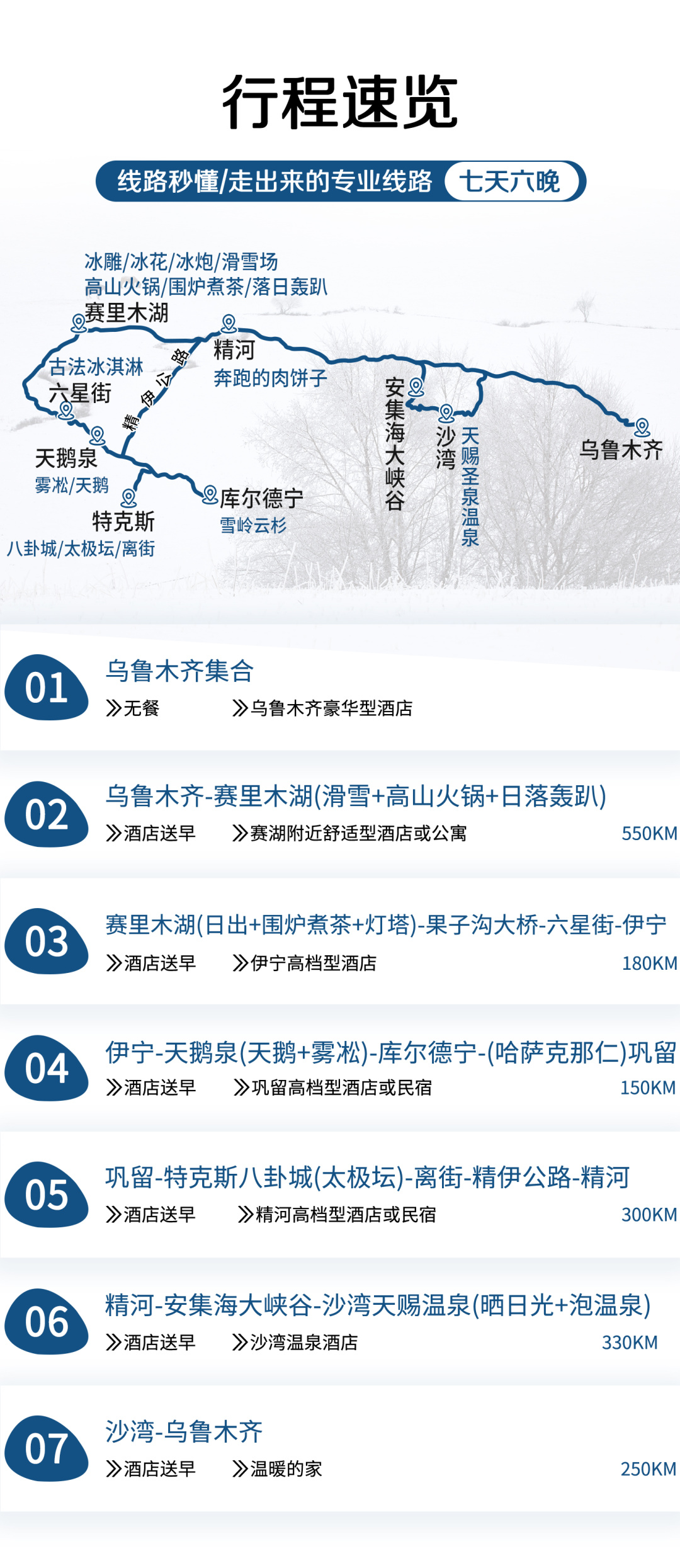 3.如遇大雪封路,前往温泉的道路无法通行,应急预案为前往石河子市入住。