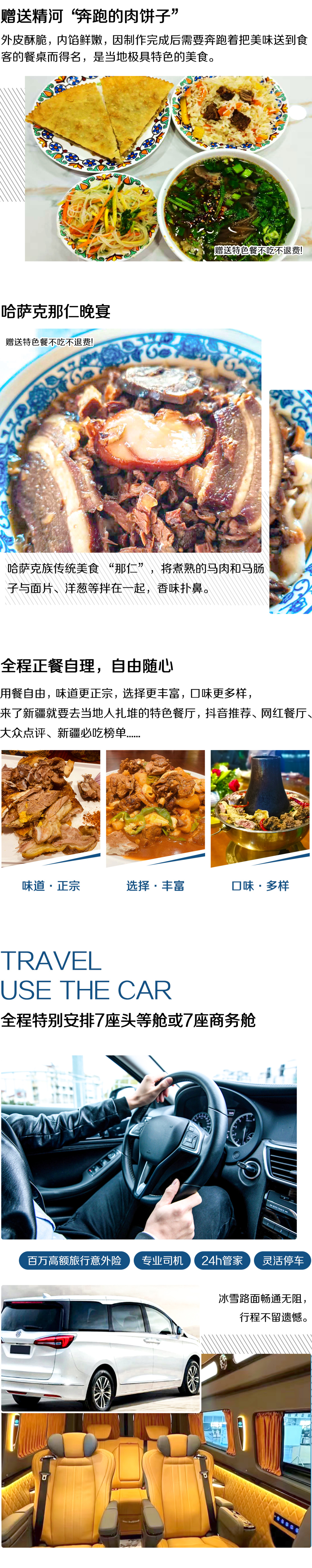 5.哈萨克那仁盛宴为赠送项目,不吃不退,敬请谅解。