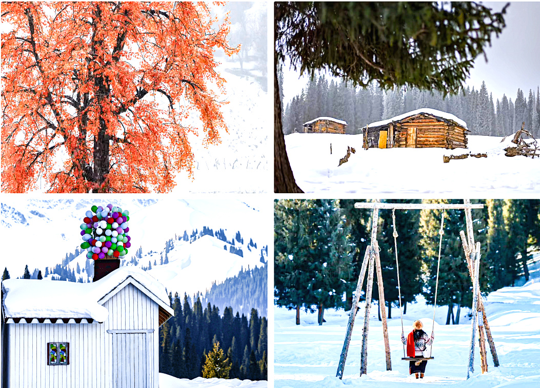 伊宁-天鹅泉(天鹅+雾凇)-库尔德宁(雪岭云杉+林海雪原+气球屋+红枫树+雪地秋千+《海蒂和爷爷》同款小木屋)-巩留(哈萨克那仁盛宴)