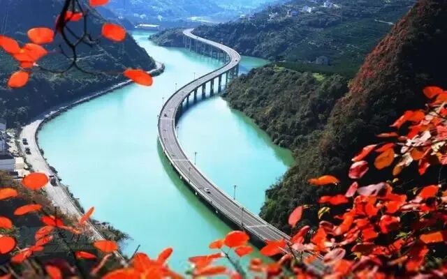 在宜昌市兴山县幽深的峡谷间,就隐藏着一条公路,它漂浮在墨绿清澈的水面上,从高处俯瞰,宛如一条长长的碧池玉带,美不胜收。初冬时节,沿途的山上红叶迎风摇曳,犹如一幅绝美的画卷。