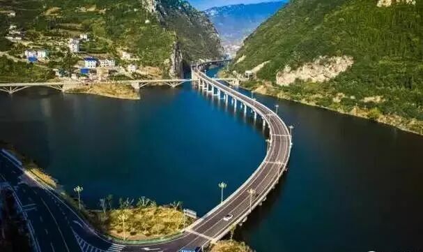 极目远眺,“水上公路”犹如一条巨龙,沿着河道和山体,蜿蜒进入深山,沿途山峦如黛,水库碧波荡漾,宛如这条巨龙置身于中国水墨画中,故而博得众人美誉——“中国最美的水上公路”