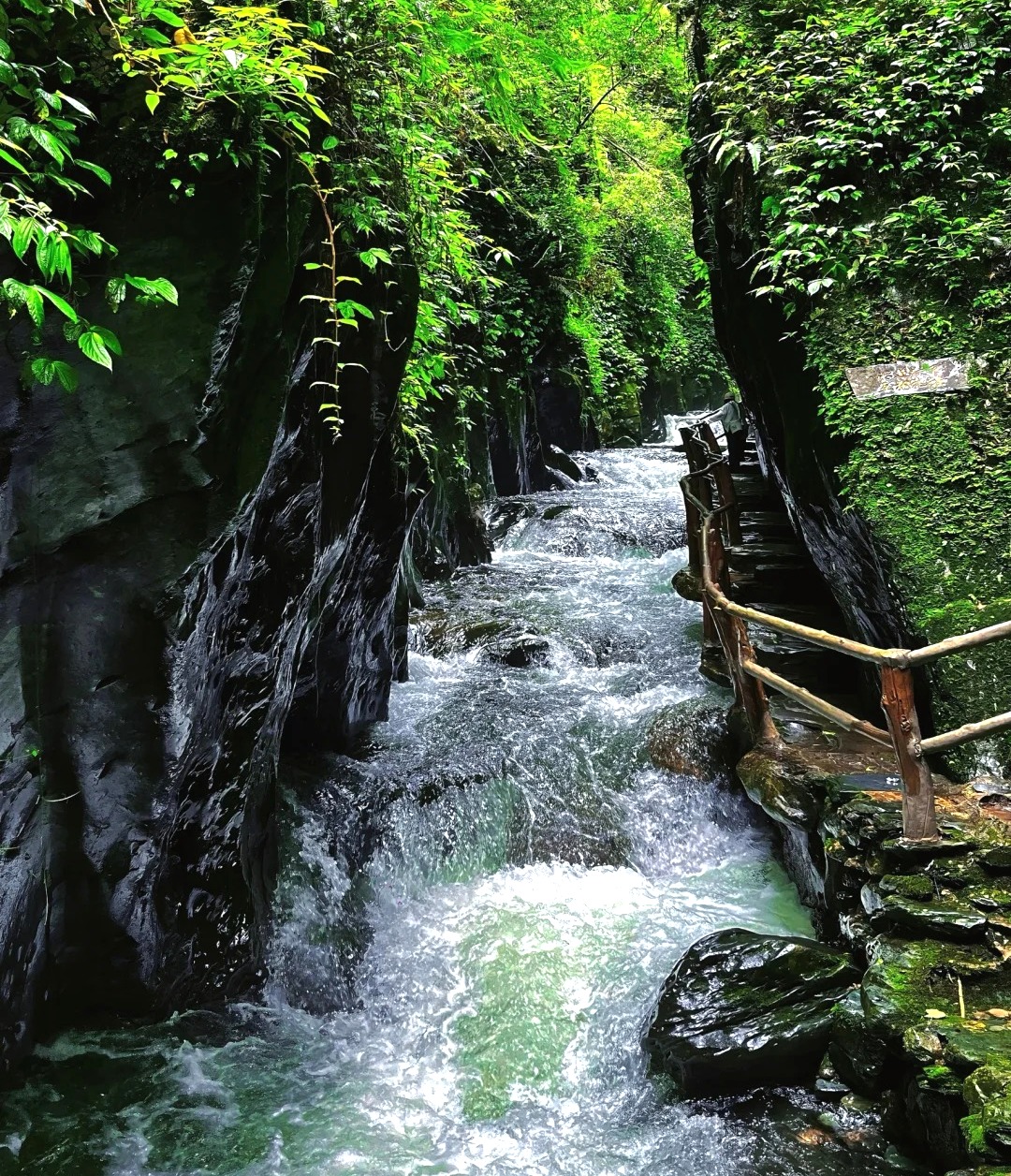 接着我们游览小桥流水,曲径通幽、又因其自然的景色酷似九寨沟,被游客称为“哀牢山上的九寨沟”的【石门峡】。然后前往【金山原始森林】。这里完全就像电影里的绿野仙踪,树上路上都长满了青苔和各类植物,负氧离子含量极高。我们沉浸在雾气缭绕的原始森林中,忍不住感叹大自然的鬼斧神工!