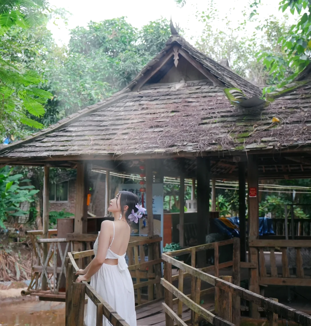 游玩结束后前往热播剧《边水往事》取景拍摄地—【曼掌村】,打卡主要拍摄地点—曼掌村哈哈之家。观赏傣族传统建筑以及热带植物,周围被茂密的热带雨林环绕,村里也种满了各种热带植物,村里游客很少,环境静谧且舒服,在村里可以自费参与非遗文化体验:制作傣陶、造纸等。