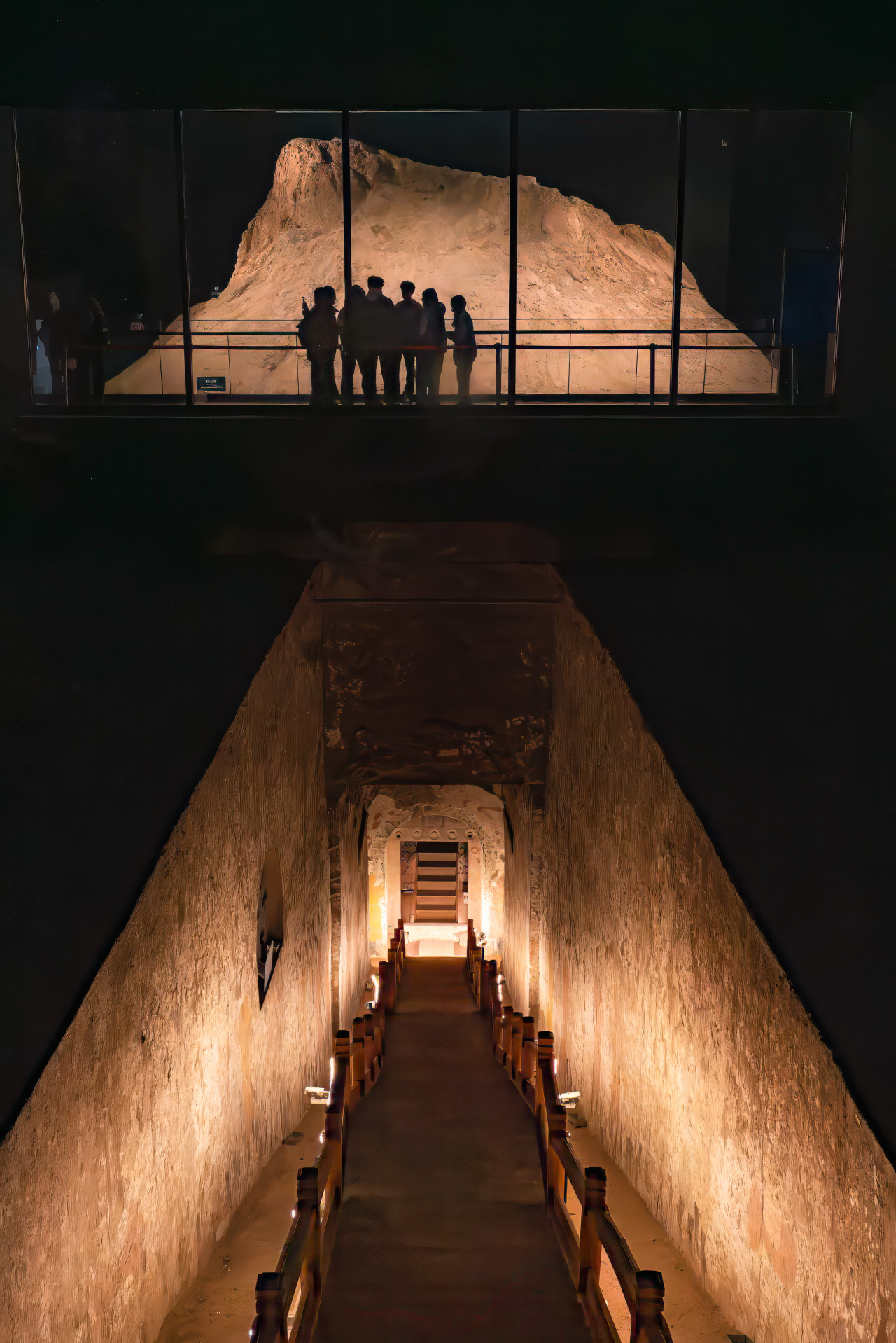 本次行程第一站,是建在北齐武安王徐显秀墓原址之上的【北齐壁画博物馆】,它像是一扇打开北齐文明的大门,瞬间将那时的绘画艺术和丧葬文明展现在游人面前,宏大的场景和精湛的笔触,让千年前的北齐气象得以重现。看着这些斑斓的壁画,震撼之情油然而生。