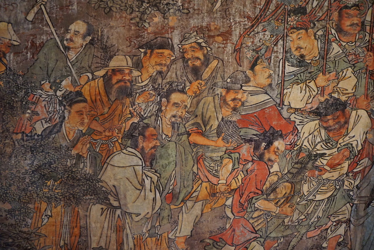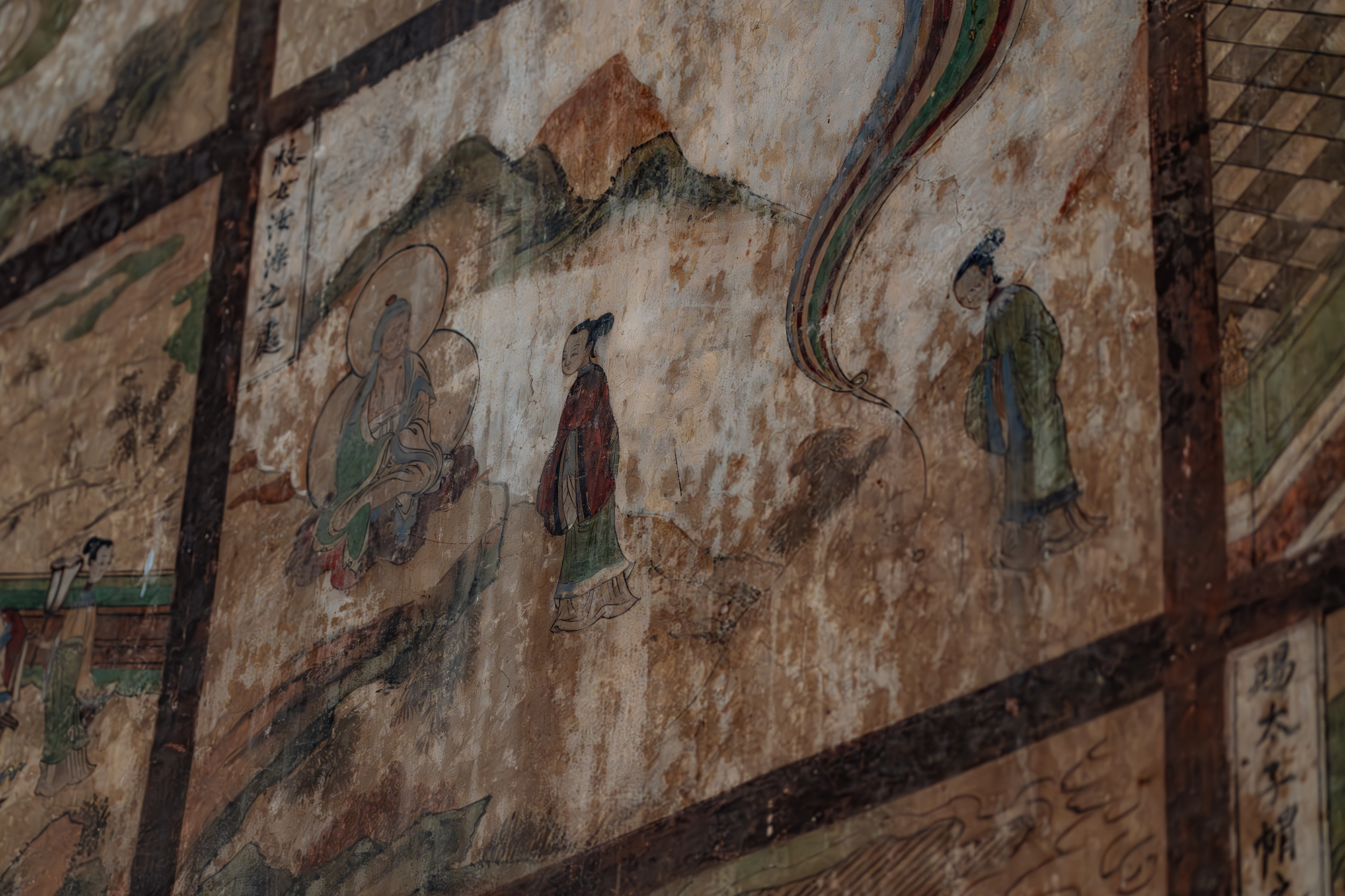 本次旅程的最后一天,我们率先来到了【永乐宫】。相传八仙之一的吕洞宾诞生于此,人们为了纪念他,才建造了这座规模宏大的宫观。踏入宫门,一幅幅色彩斑斓的壁画迎面而来,尤其是三清殿的《朝元图》描绘了近300位神祇朝拜元始天尊的盛大场景,气势十分恢宏。纯阳殿的壁画则描绘了吕洞宾的一生,从人物到花鸟都栩栩如生。
