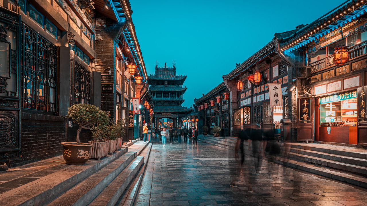 适时离开,前往今晚的住宿地【平遥古城】。和很多著名的古城景区比起来,这里更显沧桑破败,那是因为它保留着最原始的面貌。城墙上的砖石带着历史的味道,远处的街道纵横交错,游人如织,穿梭在完整保存的明清时代店铺遗址中。抬头望去,落日余晖笼罩,自有一番风味。