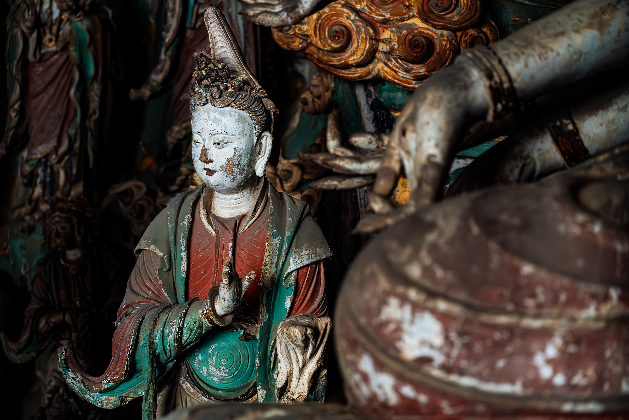 平遥县桥头村,一个听上去平平无奇的地方,却是著名文化遗产地【双林寺】所在地。踏进这斑驳的寺庙,眼前2000多尊彩塑雕像栩栩如生。【千佛殿】的自在观音身段优美;【菩萨殿】的千手观音面容祥和;【地藏殿】供奉着十殿阎罗,踏进去便令人肃然起敬。行走其中不禁有种置身佛国世界的奇妙感。