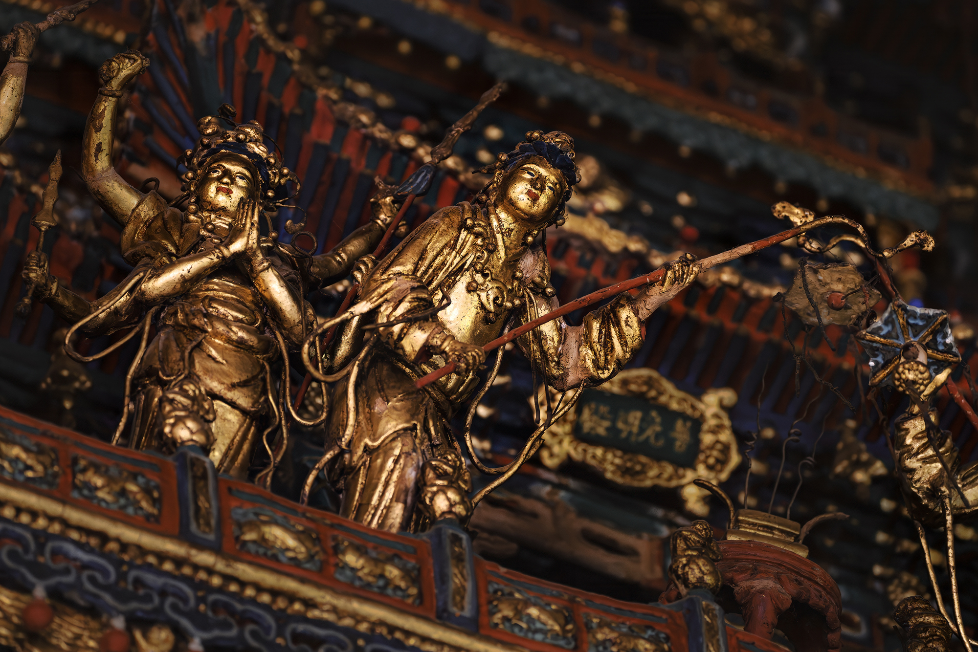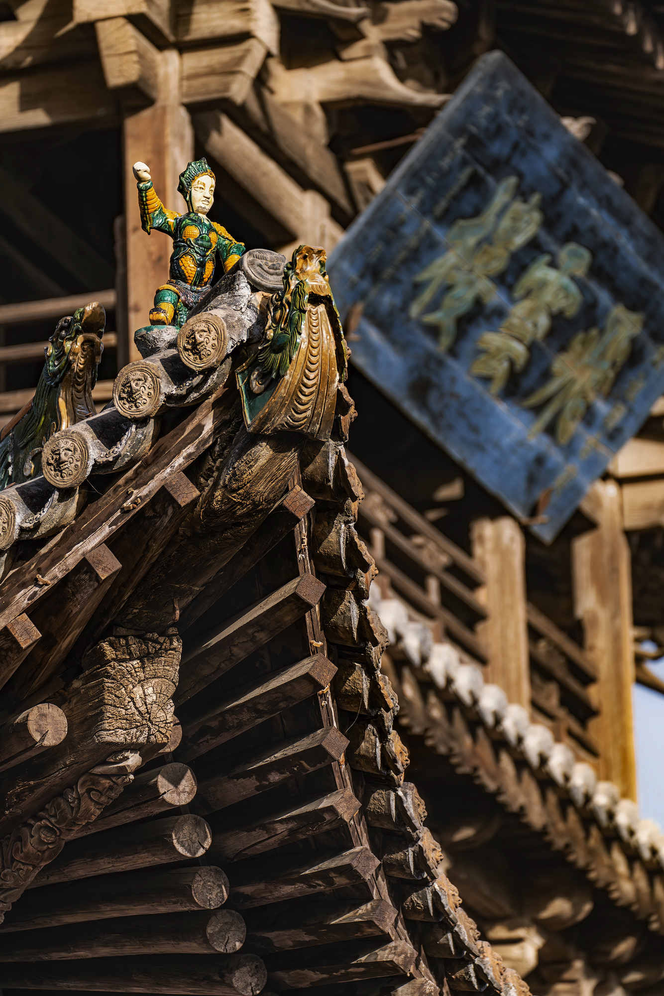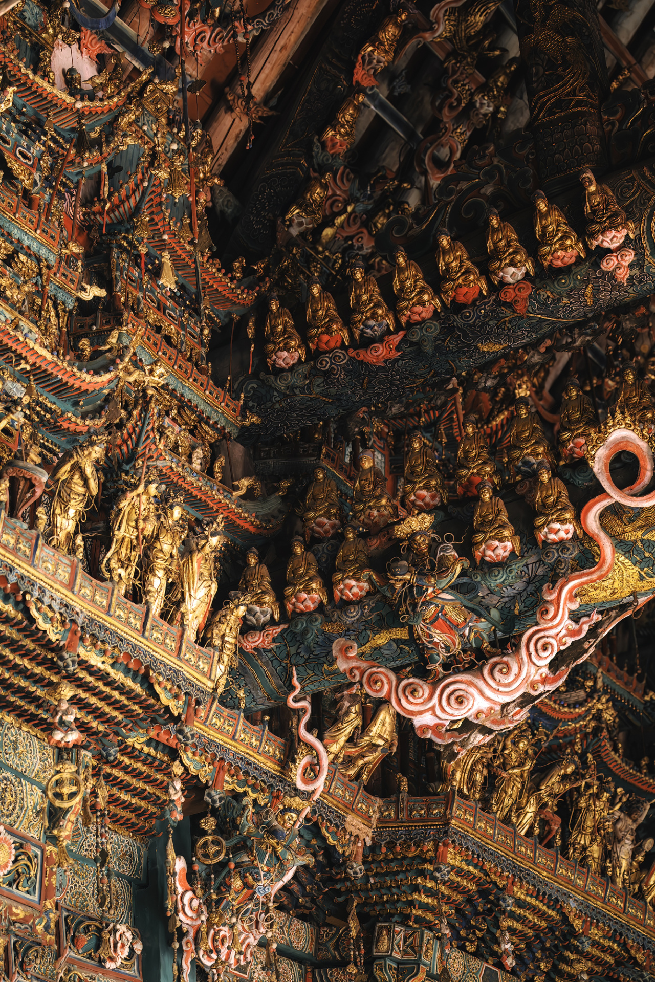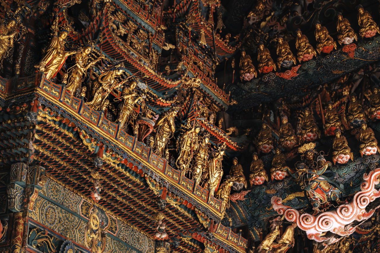 适时离开,前往【东岳庙飞云楼】。在山西,飞云楼与应县木塔并称为“南楼北塔”,可见其历史地位与建筑价值之高。作为中国纯木结构楼阁的巅峰,它也被称为“中华第一木楼”。举目望去,其斗拱像云朵般簇拥,既呼应了它的名字,又体现了自古以来我国的建筑美学。