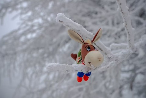 12:00 空旷的地方开始路餐,然后继续徒步前行,赏雪。