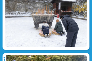 下午:前往神农顶景区,进行雪原轻徒步,欣赏冰瀑奇观,在雪地嬉戏并寻找动物脚印