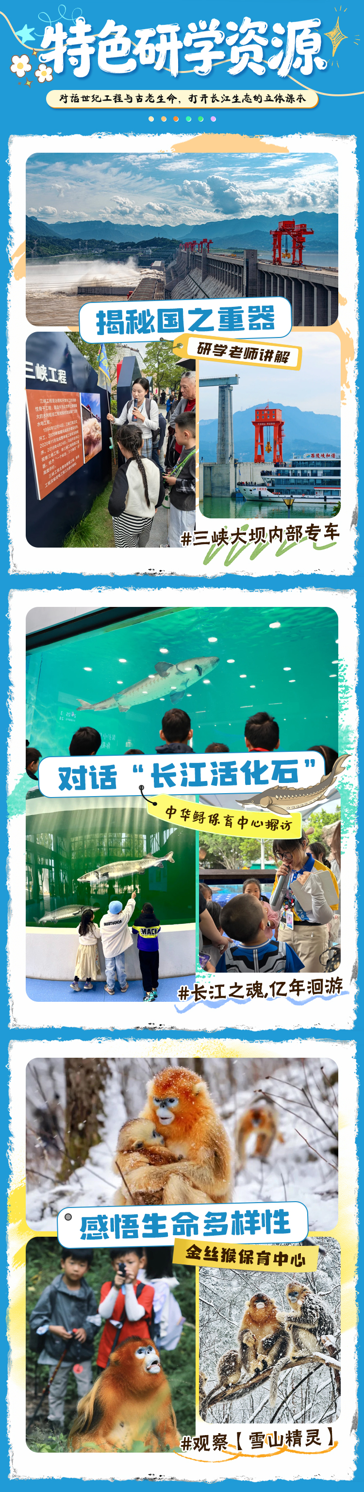 下午:参观中华鲟保育中心,观察这一长江中的“活化石”,了解保护工作的重要性