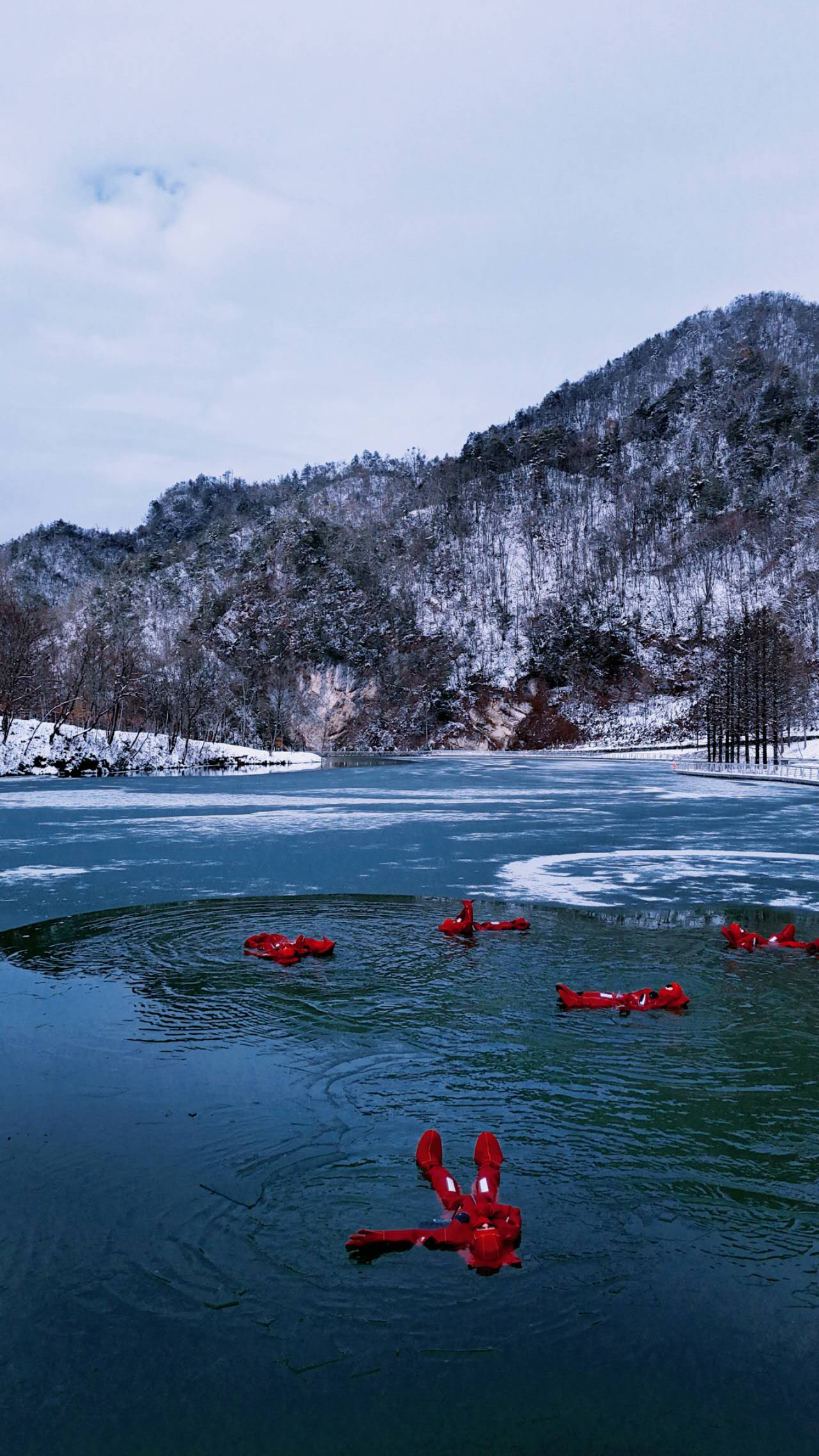 王炸神农天池冰浮体验——冰镇小龙虾,冰岛阿勒泰同款!在神农天池的冰封秘境中,你穿着专业防寒服,平躺在特制浮具上,身体随着冰湖微澜轻轻飘荡。这与伊春冰雪森林中的冰浮体验异曲同工,躺在冰河上的艺术,让你成为一只真正的"冰镇小龙虾"。